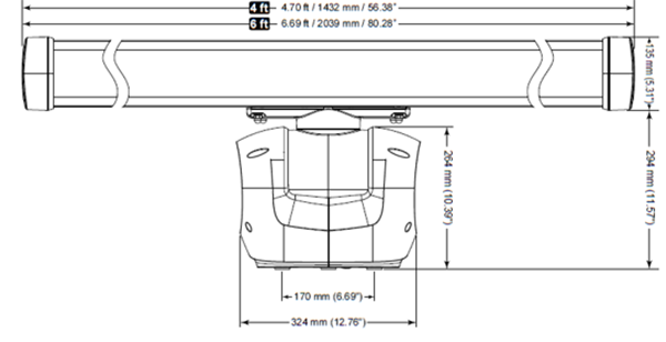 Overall: 4ft - W: 4.70 ft / 1432 mm / 56.38" x H: 429 mm / 16.88" x D: 339 mm / 13.35" 6ft - W: 6.69 ft / 2039 mm / 80.28" x H: 429 mm / 16.88" x D: 339 mm / 13.35" Mouting Area: 4ft - 4.7 ft / 1443 mm / 56.81" 6ft - 6.72 ft / 2047 mm / 80.58" |