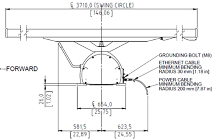 Dimensions WxHxD Antenna: W: 12.17 ft / 3710 mm / 146.06" x H: 117.5 mm / 4.63" x D: 499 mm / 19.64" Transceiver: W: 354 mm / 25.75" x H: 647.3 mm / 25.48" x D: 477.6 mm / 18.8" Weight Antennas (kg): 53 Transceiver (kg): 73 (30 KW S-Band) |