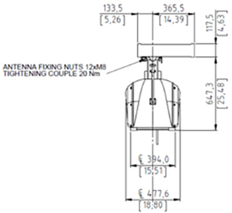 Antenna Type End-fed-slotted wave guide Polarization Horizontal Antenna Length 12ft Swing Circle (mm) 3695 |