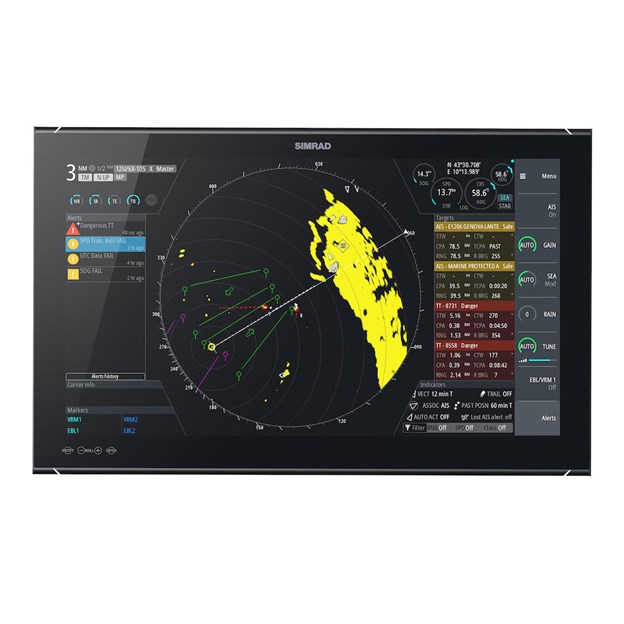 The M5027 marine monitor has a native resolution of 1920 x 1080 pixels (WUXGA), in 16:9 widescreen ratio suitable for use with wide-screen optimised Simrad radar systems and Simrad E5000 ECDIS systems.